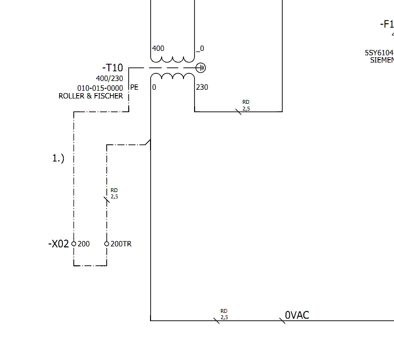 400v/230v隔離變壓器,輸出用做控制電源,輸出一端接地可以消除感應電壓,并且使輸出電源線從兩條火線變成一條火線一條零線。方便線路安排。