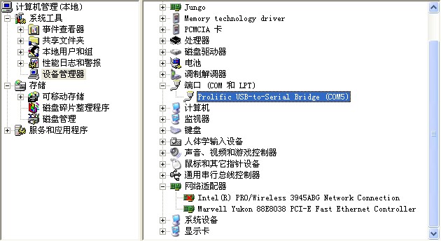 我的電腦----右鍵-----管理---打開設備管理器,在里面有個-----端口(COM和LPT),在這里就能看到你連的是哪個端口了。