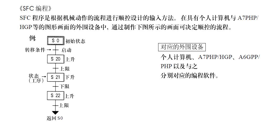 就像他這個圖,就是你想要的SFC,就是流程圖,其實就是步進指令,一步一步的走下去的那種,對于新手不用去搞什么SFC,就用大眾化的梯形圖編輯就可以了。