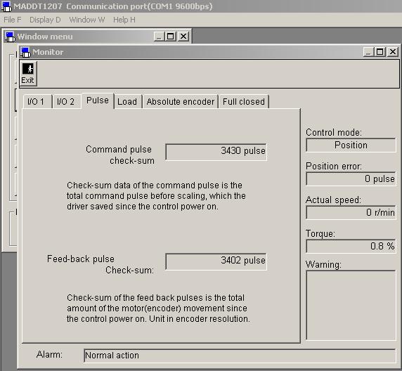 驅動器裝上后就把模式改為位置控制,進行了自動增益調整,其他的參數都是用的出廠時的默認值