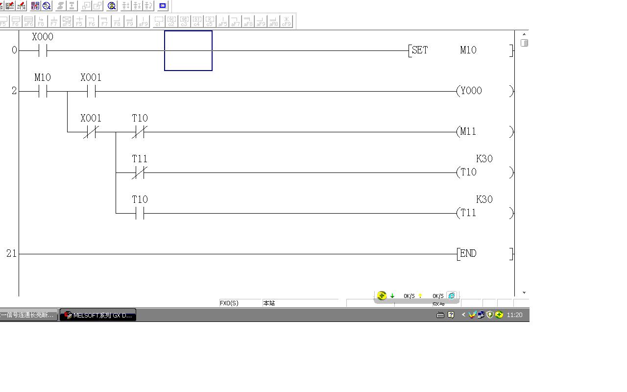 程序描述:一個x0的開啟信號,當x1信號連通燈長亮,x1信號斷開燈閃爍(頻率300ms亮一次)。