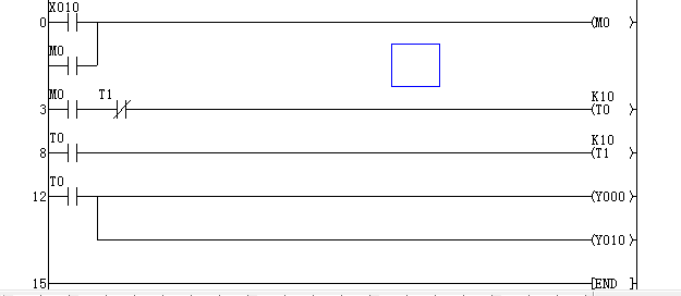 這只是一個閃爍的動作啊 你可以LD X10 OR M0 OUT M0  LD M0 IN M8013  OUT Y0