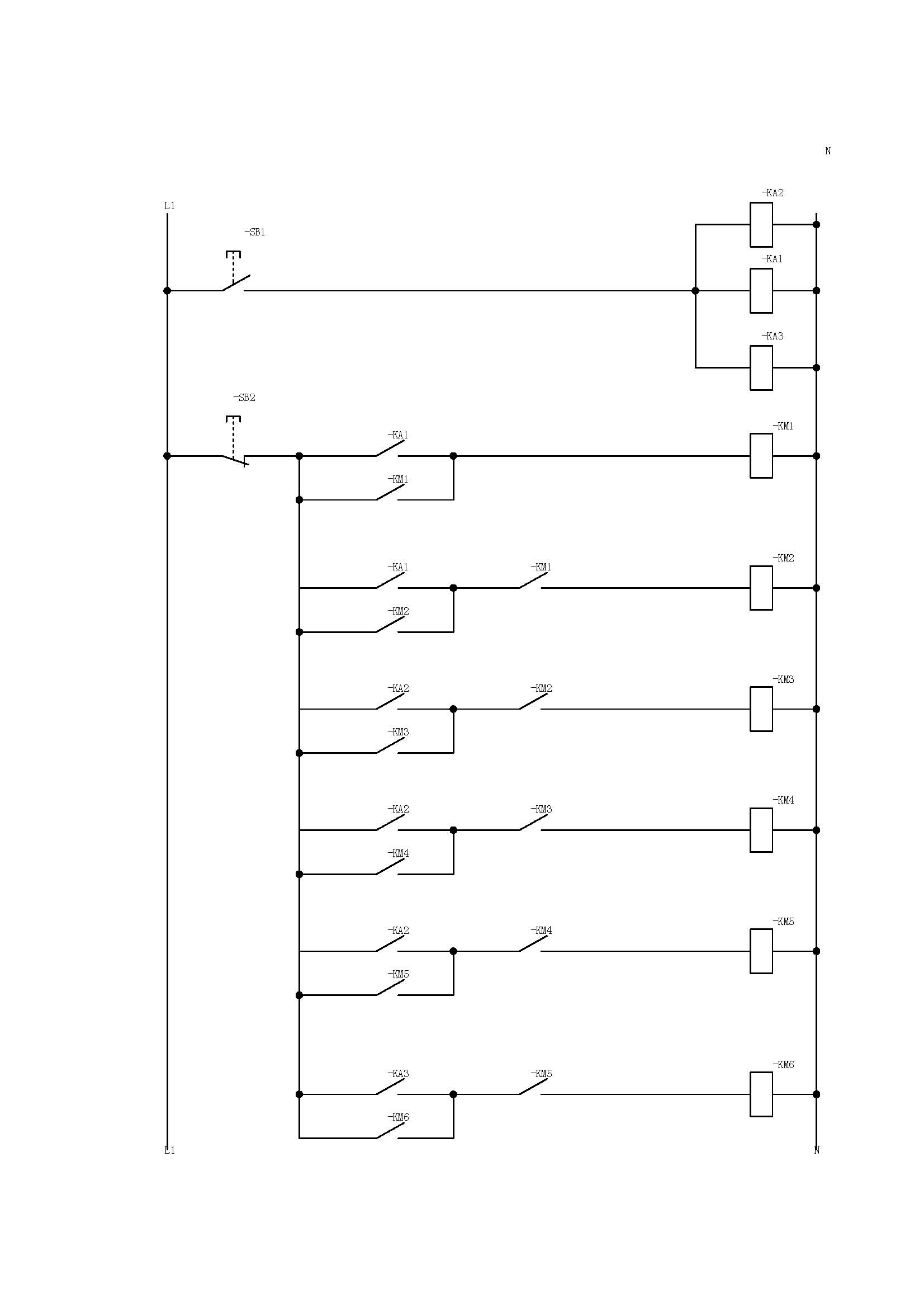用第一中間繼電器的常開點串在第二電機的控制線路上,控制第二個電機啟動,第三個用第二個依次類推.