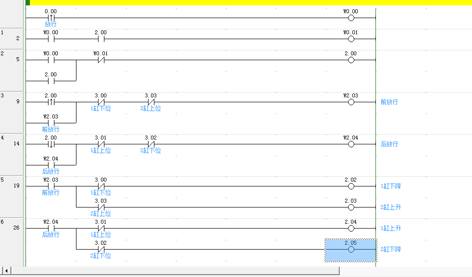 不好意思,打錯了。前放行和后放行的斷開條件應(yīng)該取到位信號的與邏輯的常閉觸點。呵呵