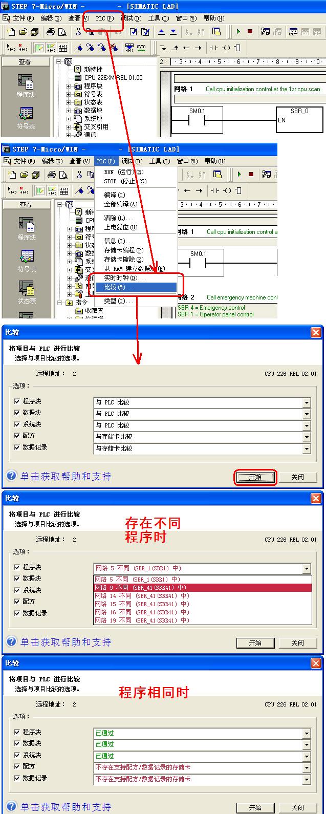 在線讀機器內PLC程序,再將以前備份的程序與讀到機器內的PLC內的程序對比的方法??