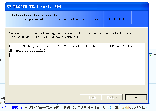 請教各位老師我安裝PLCSIM V54 SP4時出現以下提示:是什么意思?