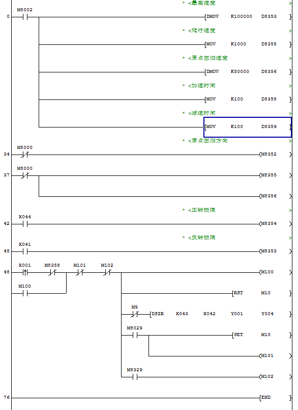 寫了一段測試程序如下,注:用PLSY同PLSR指令正常,就是回原點指令DSZR無法用 ,不知道問題出在哪里?