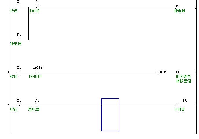 要實現當按鈕按下不放時接觸器得電,同時計時,松開按鈕時接觸器繼續得電,等到剛剛計的時間后自動停止.(有一點就是按鈕按得時間是變化的,比如有5秒,也可能6秒等等)