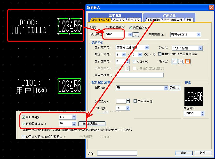 第二個(gè)對(duì)應(yīng)軟元件D101,用戶(hù)ID設(shè)置為20;