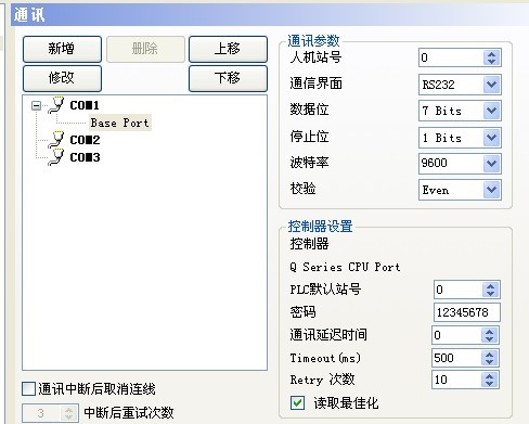 三菱為422通訊,把改成COM2就可以了
