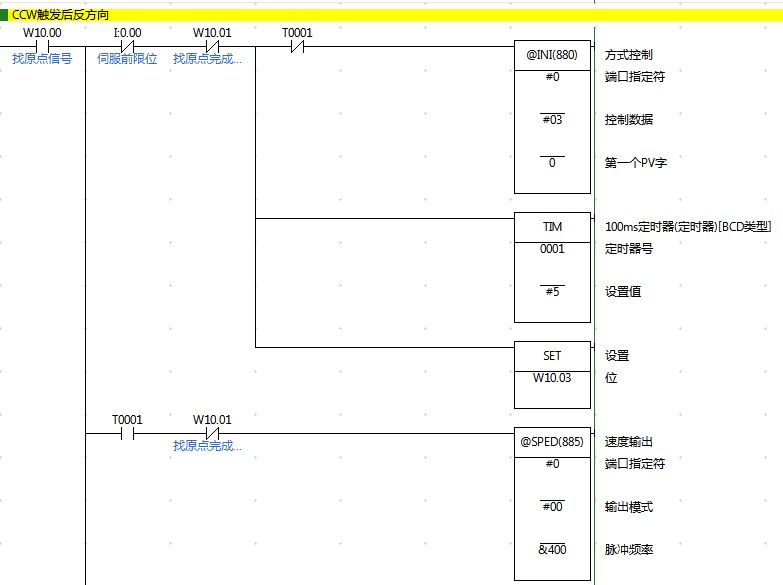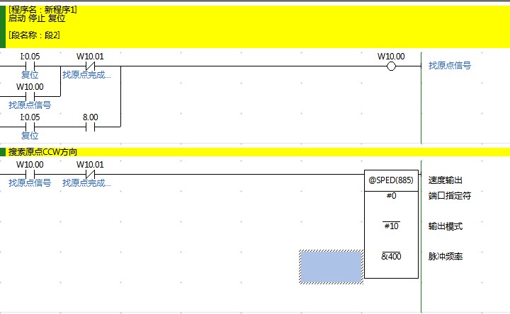 請假大家下,我用自己編的程序找到原點,然后可以使用相對脈沖讓它動作,但是換到絕對脈沖以后就不行了,大家看看是什么情況。我知道PLC有自帶的找原點指令,現在我不用ORG  我自己確定原點后 不知道怎么使用絕對脈沖,比如絕對脈沖是-xxxxxxxxxxx到+xxxxxxxxxxxx 代表就是2個方向么? 那我怎么把-xxxxxxmovl到D10中 提示不能用#-xxxxxxx
