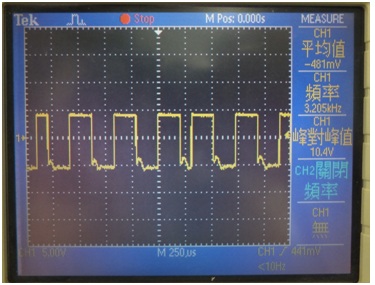 送到從站的波形是正常(fig11); 但是由從站送回的波形會突然變平掉不見 (fig12).