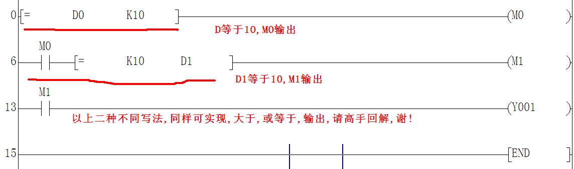 這是觸點比較指令,相當于一個觸點,兩種寫法都很正常。主要是看個人的編程習慣和加入這個觸點條件的編程先后而定。隨便使用!