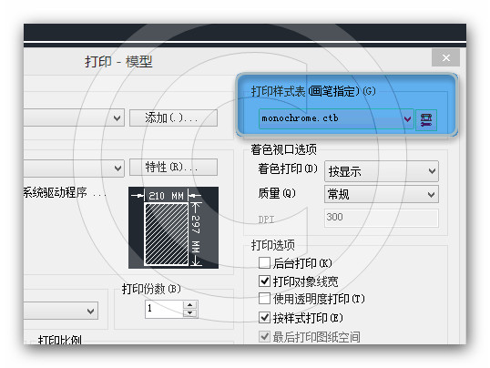 黑白打印機的話,請選擇打印樣式表如下圖所示: