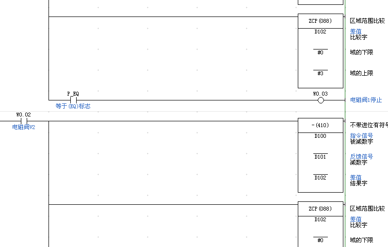 控制一個3位4通電磁閥V1,V2,指令信號為4-20ma,反饋信號為4-20Ma,要求指令信號為4-12ma時電磁閥V1動作,當反饋信號和指令信號差值很小時V1停止工作;當指令信號為12-20MA時電磁閥V2工作,當反饋信號和指令信號之間差值很小時V2停止工作。求大俠告知,謝謝了