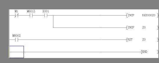 K4Y0是在不斷的變化的,但不是在進行加1的變化(而是1 3 7 15,,,,,,)!由于你程序中是K4Y0Z0,隨著Z0的不斷變化,INCP 的操作對象也是在不斷的變化的! |