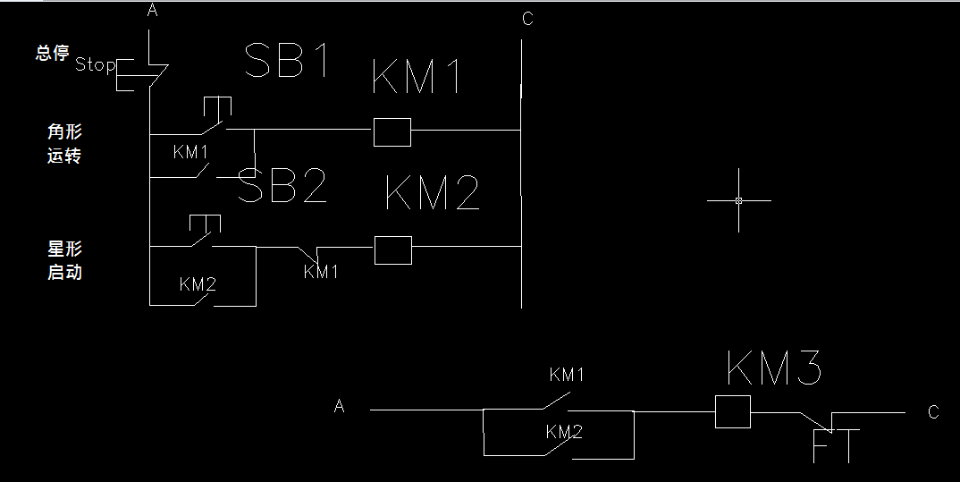 角形與星形必須互鎖,否則兩個(gè)按鈕同時(shí)按下會(huì)短路。