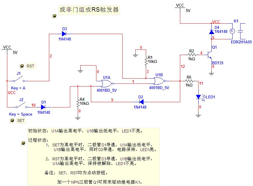 R、S端加二極管IN4148的作用是低電平輸入無效。