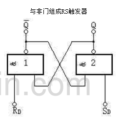 與非門組成RS觸發器、或非門組成RS觸發器。