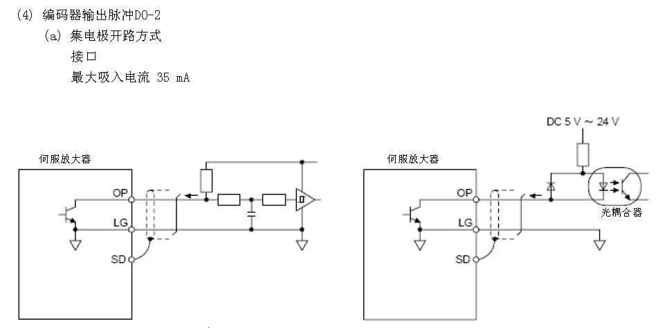 引用引用第1樓長(zhǎng)沙林工于2013-08-22 14:37發(fā)表的 :MR-JE-A伺服放大器技術(shù)資料集3-54頁(yè),用光耦連接放大器OP-LG端子,外加DC5-24V電源,再與PLC的高速計(jì)數(shù)器輸入端相連,可讀出電機(jī)的脈沖。上圖沒(méi)有成功,自己去看。