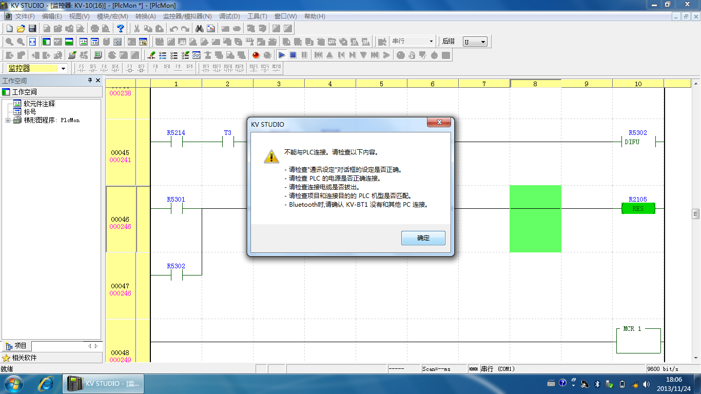 電腦和基恩士PLC KV-40DT或KV-16DT連接后,監視程序,可過一會兒總是斷開。有時提示超時錯誤,有時如圖所示。不知道怎么回事?