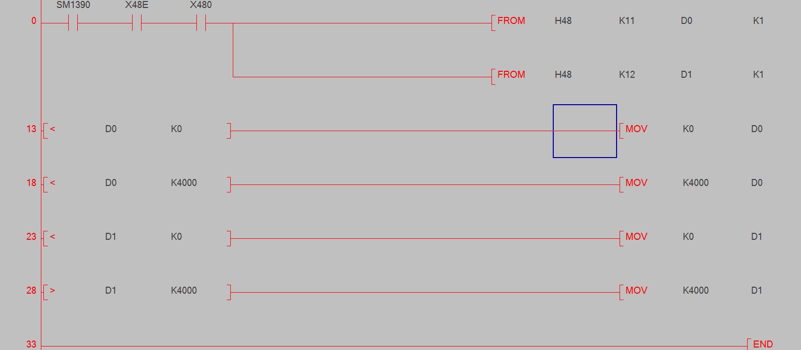 圖中程序[ FROM H48 K11 D0 K1]  H48怎么定義?  Q68DIA模塊模擬數據轉換