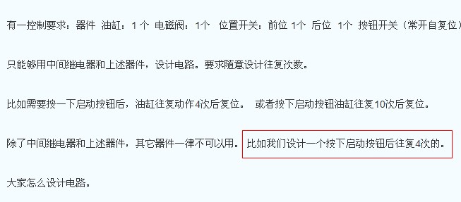 只是說用按這個控制要求做一個電路,不要改次數(shù)。比如你設計一個電路,是按一下按鈕動10次的。這個電路當然就是動10次的了。我的意思是可以隨意設計動多少次的電路,