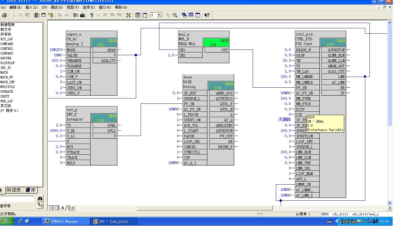 在CFC-fc111圖表中,MUL_R這個(gè)塊起什么作用呢?LMN連接MUL_R的IN1,而IN2又是1,那么得出的結(jié)果就是LMN這個(gè)值吧?而且MUL_R連接CTRL_PID的PV_IN,感覺(jué)怎么像是陷入循環(huán)了呢