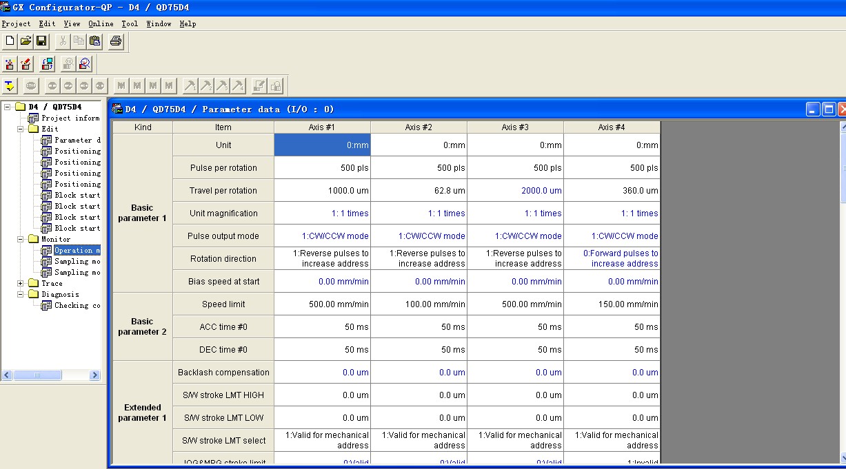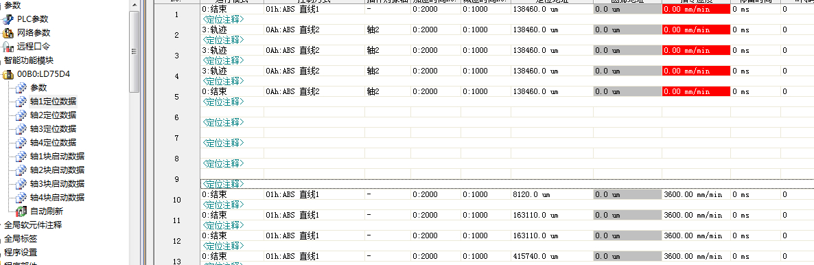 所有參數用PLC寫入有個好處就是當定位單元故障時,及時更換即可,不必擔心參數及定位數據的丟失,PLC中有專用的讀寫指令,建議仔細查閱QD75P的說明書,確定定位單元所占用的通道地址及控制其每個參數所對應的地址位;不過該做法要有心理準備,程序的編制很繁瑣要有足夠的內心和毅力。