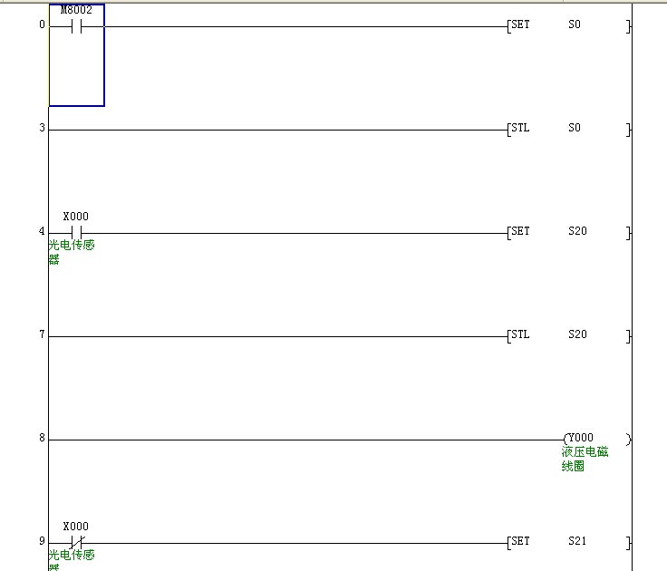 不是很明白樓主要表達的意思,光電開關是不是接輸入點x0?X0接通后液壓電磁閥接通并下降?直到光電開關信號斷開?此時推動氣缸得電動作2秒?氣缸延時一秒后也動作2秒? |