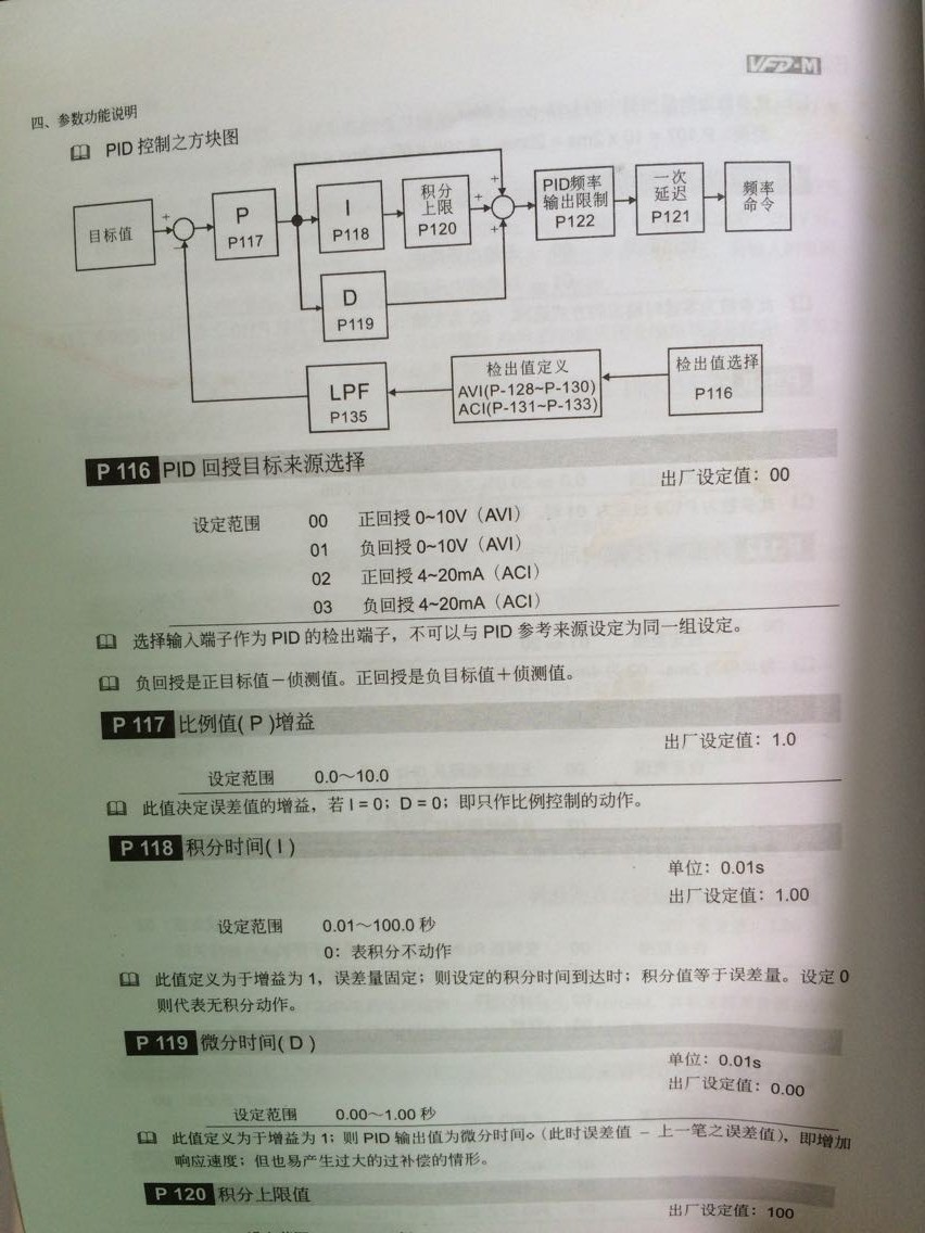 臺(tái)達(dá)VFD-M與壓力變送器(輸出4~20mA)使用需要設(shè)置哪些參數(shù)?我把PID所有參數(shù)都設(shè)置過(guò)了,沒(méi)有任何反應(yīng),求高手圍觀