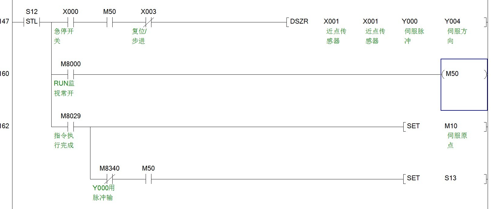 如果將第二個(gè)X01,改變一下輸入(X0-X7)接入伺服電機(jī)的Z相脈沖,那回原點(diǎn)的精度就大大提高了。
