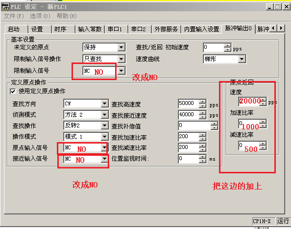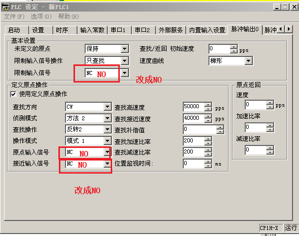 引用引用第4樓xyzenter于2016-11-01 10:33發(fā)表的 :前輩:我用ORG指令回原點,指令是ORG #0000 #1100,但是PLC死腦筋,這條指令不能設定方向,只能往一個方向回原點;我前面的定位脈沖是用PLS2來做的,脈沖+方向,絕對定位 當我往前定位完成的時候,用ORG能返回原點,但當我PLS2往后定位的時候,再用ORG,他繼續(xù)往后返回原點,相當于往后定位兩次了,這個怎么破?