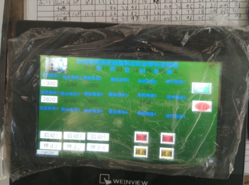 是威倫屏跟三個變頻器通信,試過能啟停,頻率設定