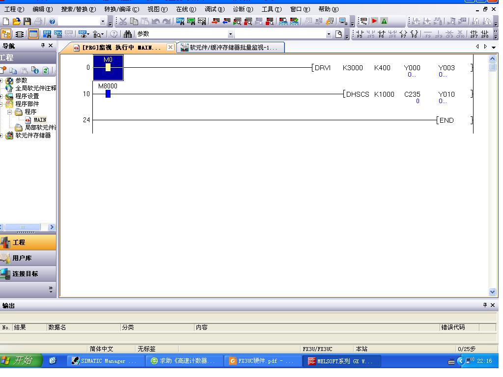 我想利用FX3U的高速脈沖輸出口Y0的脈沖輸出作為高速計數器X0的輸入,接線如圖所示,