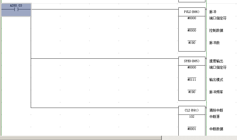 我寫了一個程序 想要的目的是 :上電的時候 電機不轉,當CIO 002 收到信號(我用的是線頭24V直接接觸),進入中斷,在中斷中,我寫了程序,讓電機順時針轉1圈 然后再逆時針轉1圈。