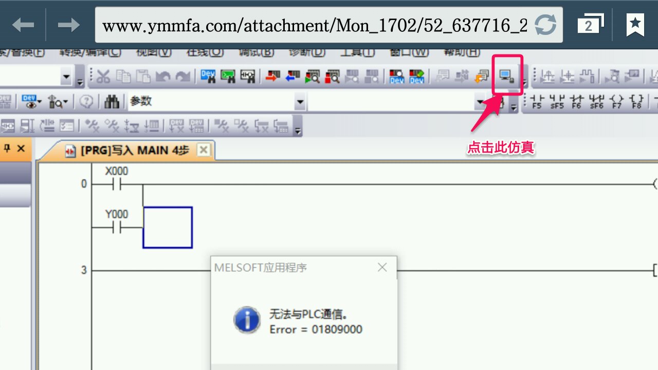 就是寫了一個程序之后 點擊 轉換/編譯---轉換,之后再點擊調試---模擬開始停止,然后就出現了 無法與PLC通信  error=01809000