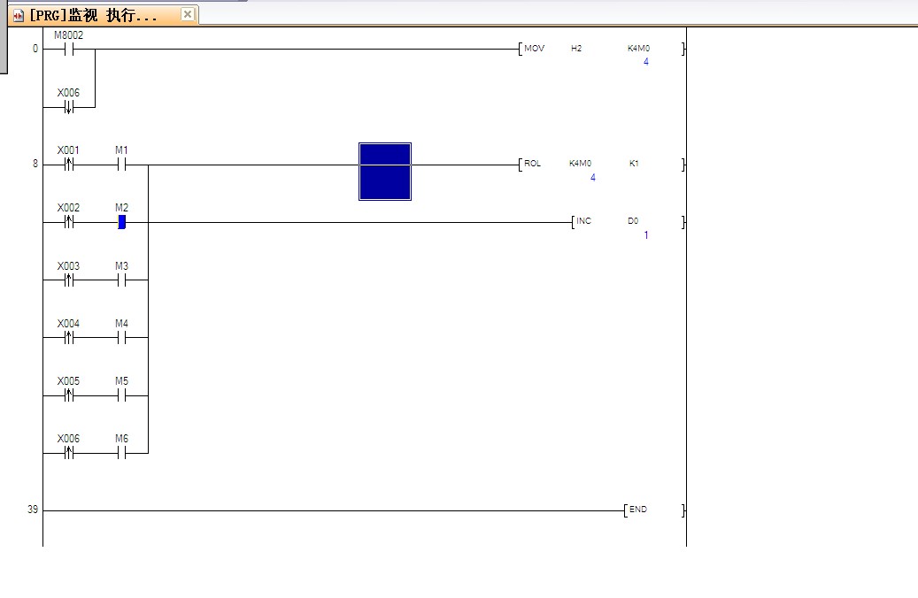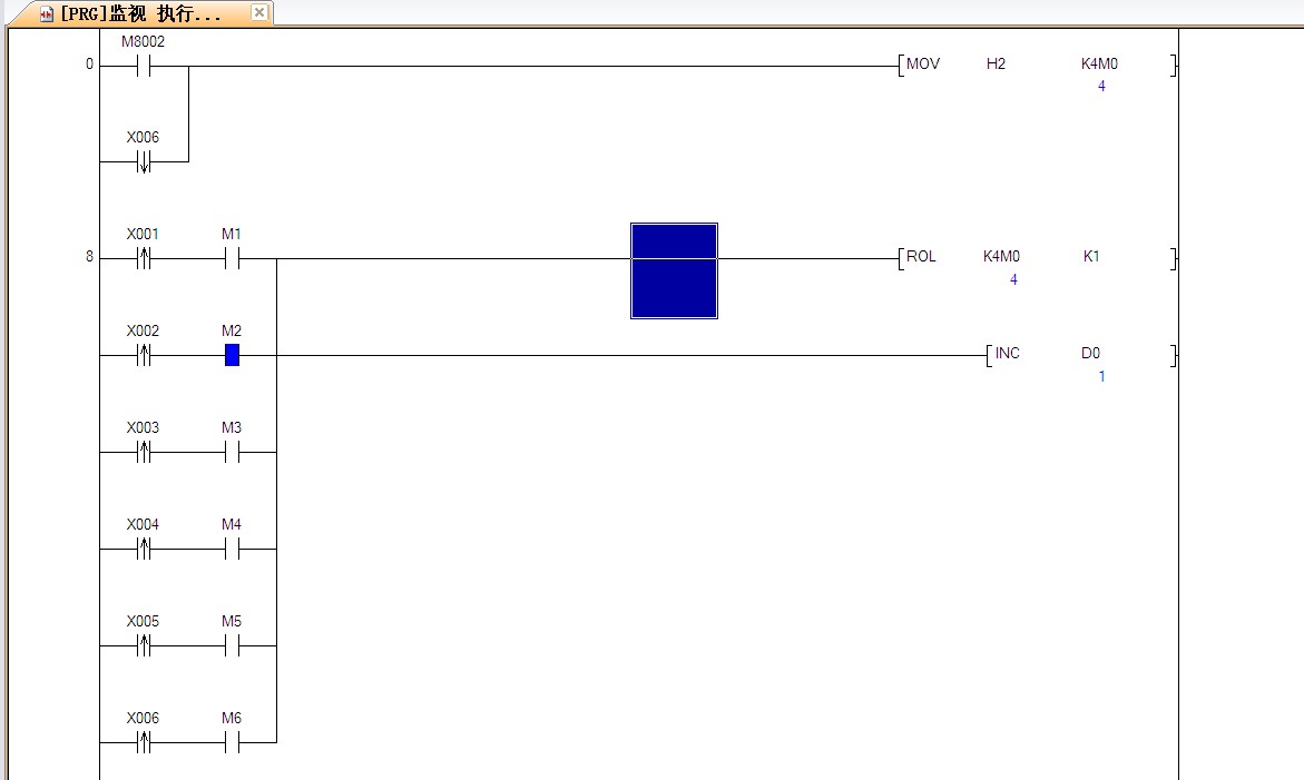 感謝樓上朋友指導,我把它轉成了FX系列的程序,用ROL指令確實可以實現基本功能,但是當計數X6的時候不能繼續返回X0循環計數,還有一個問題就是每次上電X點計數狀態不能記憶,要求上電必須接著上次計數是的順序接著計數,程序可能還要進一步完善。