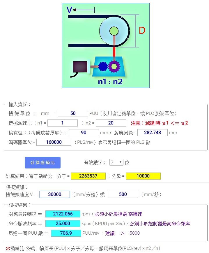 引用引用第2樓dh0010于2017-03-15 19:55發表的 :同步帶齒輪比計算可以參考 => 齒輪比計算工具畫面如圖檔,參數可自行修改: [attachment=170701]