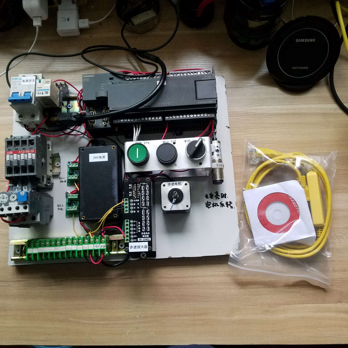 西門(mén)子PLC學(xué)習(xí)機(jī)一套,步進(jìn)電機(jī)學(xué)習(xí)機(jī)。送編程線(xiàn)一根。 買(mǎi)去后,全部的都齊了。不用到處找了,線(xiàn)也接好了。直接編程學(xué)習(xí)就行。