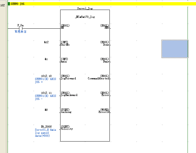 這個功能塊應該是自己設計的,功能呢是 伺服電機的 點動功能