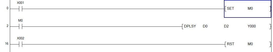 那就改為用自鎖來控制M0輸出吧,這樣應(yīng)該沒有問題了的 LDP X1 OR M0 ANI X2 OUT MO LD M0 DPLSY D0 D2 Y0 END |