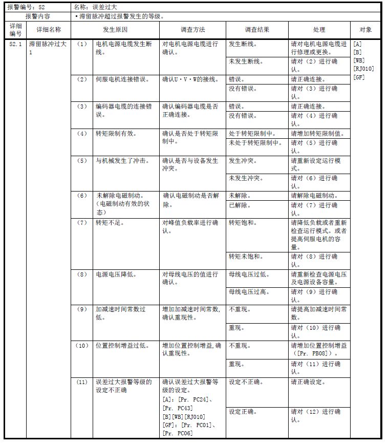 引用引用第1樓secgo于2017-06-21 10:44發表的 :根據說明書,你是Z軸?有可能線路有地方有點破了,又沒有完全段,這個報警比較多原因,你一個一個排查,先根據說明書調整參數試試