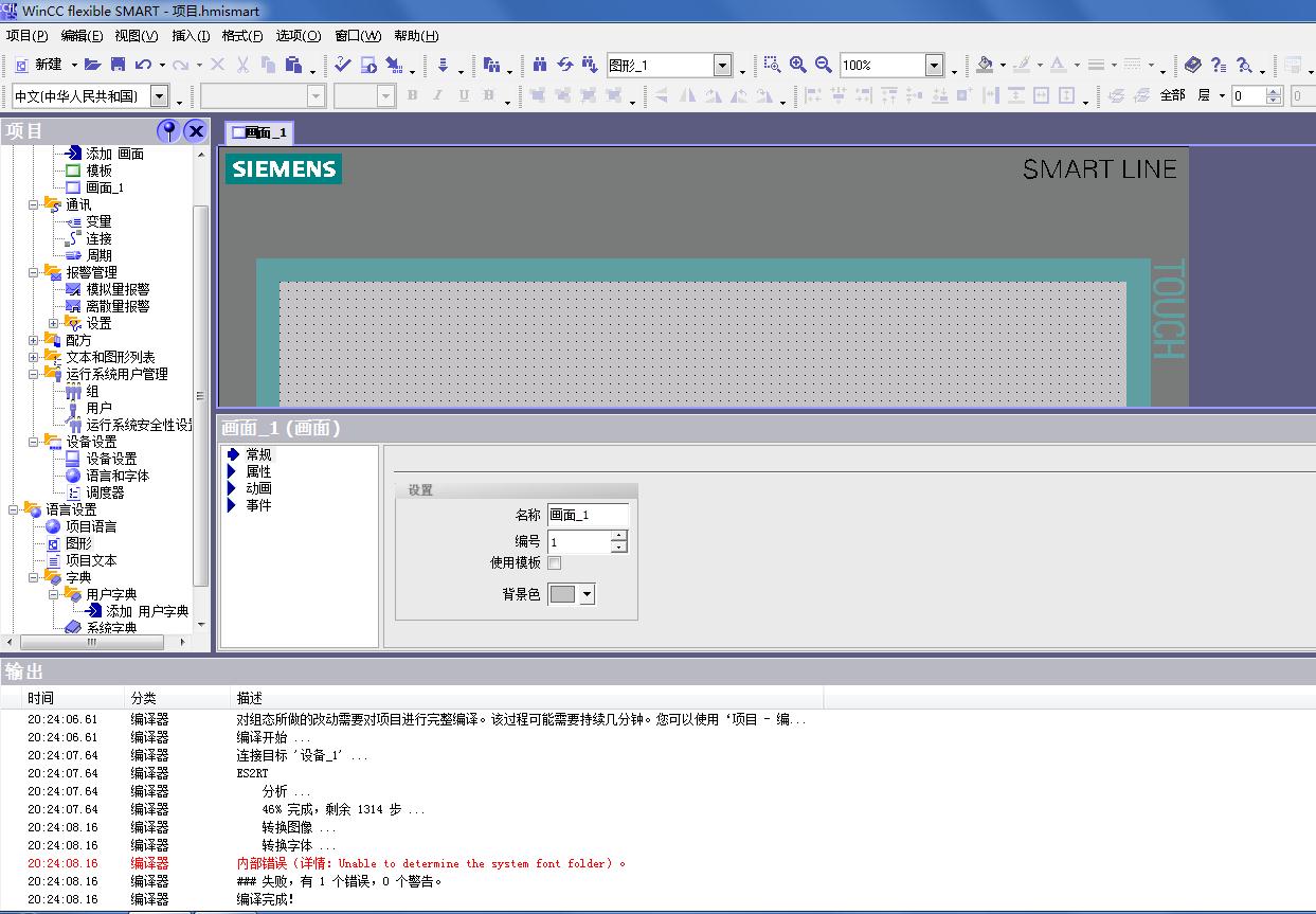西門子觸摸屏WinCC flexible SMART V3軟件編譯器出現內部錯誤如圖