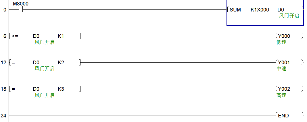 例如x0到x3分別感應(yīng)風門開啟狀態(tài),y0低速,y1中速,y2高速