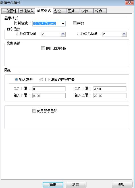 數(shù)字格式—資料格式—16 bit signed—輸入下限