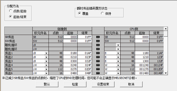 B和W就是給編程用戶用的,本身沒有任何信息。只有編程了,才由程序給它實際的意義。MNET/H里面配置了LB0180-B01AF映射到B0180-B01AF,也就是把網(wǎng)絡(luò)中的LB0180-B01AF的信息傳輸?shù)奖綪LC B0180-B01AF,至于LB0180-B01AF中是什么,由主站的網(wǎng)絡(luò)分配中配置,上圖中LB0180-LB02FF的信息是由2號站寫入,所以LB0180-B01AF一定是2號站數(shù)據(jù)刷入,至于2號站的LB0180-B01AF對應(yīng)的是什么,就得去查看2號站PLC程序的刷新參數(shù),比如2號站PLC程序的刷新參數(shù)為B0180-B01AF對應(yīng)LB0180-LB02AF,那就查看B0180-B01AF在2號站PLC程序里對應(yīng)是干什么用的,這個一看注釋,二分析程序