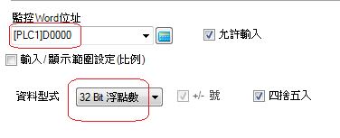 觸摸屏上選擇數據類型32位浮點數,32-bit Float