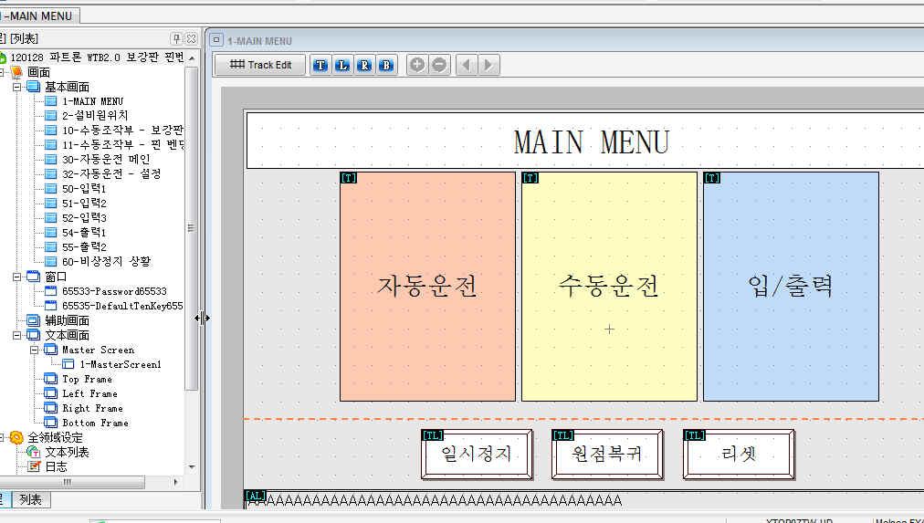 屏上有標準韓文翻譯還是沒問題的,都是常用的技術方面術語。程序里面的就需要安裝韓文系統或相應的編程時的系統才能顯示,用中文系統是亂碼的。例如上面的“自動運轉,手動運轉,入/出力(輸入‘輸出)”這樣的畫面還是比較簡單的。