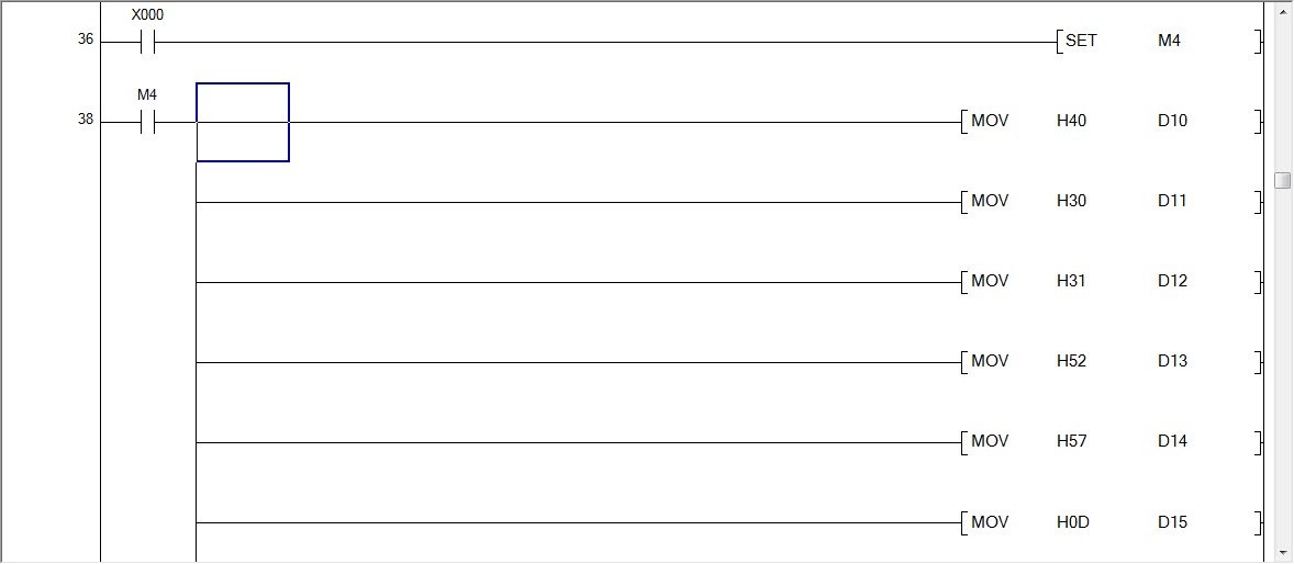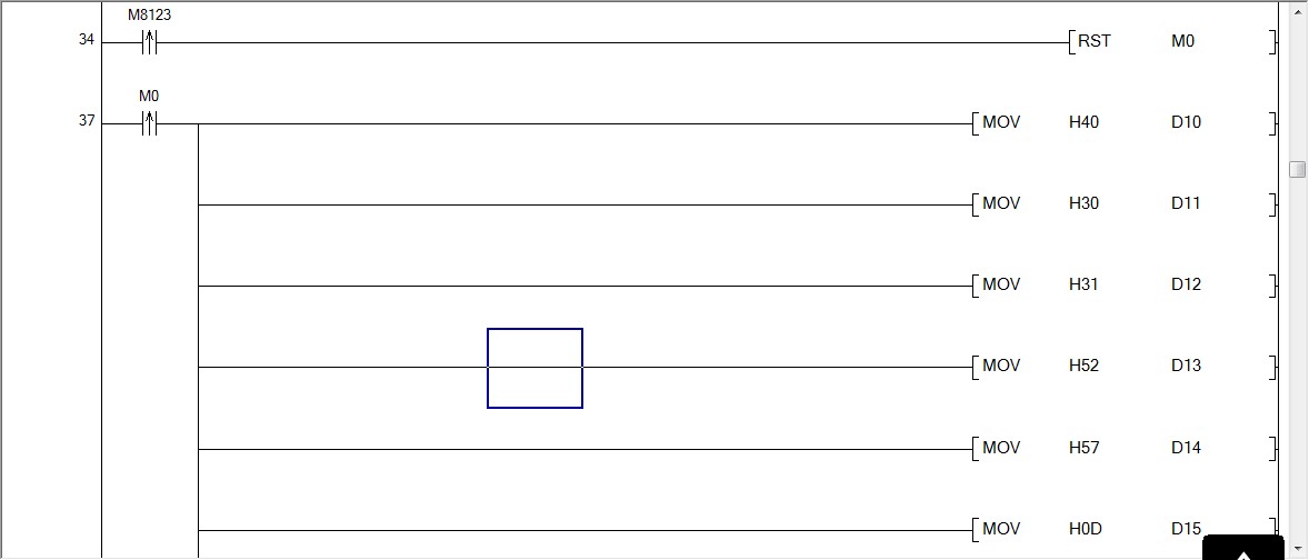 這個程序我只能測試通訊,中途修改了幾次,原來的原因是發送數據的時候沒有一直執行RS指令,我以為的步驟是先執行數據傳送指令,在脈沖執行RS指令,!沒想到RS指令要一直接通!M4這個位置是后面改的置位!很感謝各位! |